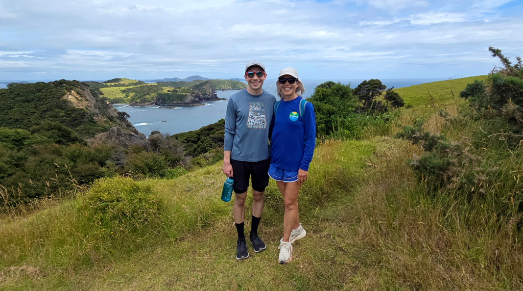 Urupukapuka Bay to Deep Water Cove to Oke Bay was my favorite day. We woke early to smooth water and sunshine—exactly what we had hoped for—and made the short trip to the start of the trek. With the anchorage all to herself, Gerty had the run of the place, and we were off hiking in no time.